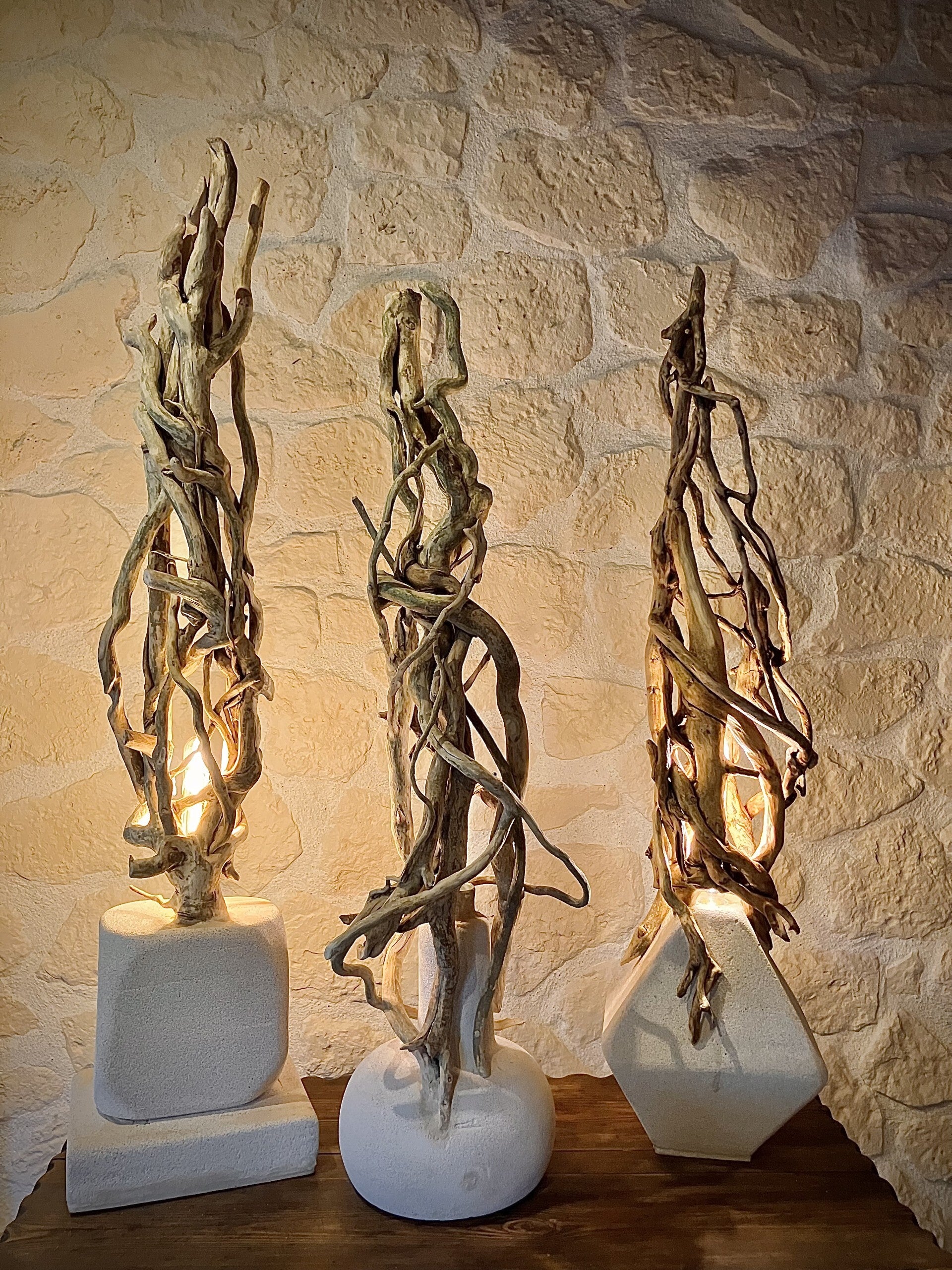 Des Racines en Lumière vous propose une gamme de luminaires d'exception. Apportez une touche d'originalité et de nature en sublimant votre intérieur avec des pièces uniques. Chaque modèle est réalisé à partir de différentes essences de bois et de différentes matières : dérivées du bois, pierre, verre, métal. Chaque œuvre est créée dans la mesure du possible avec des matériaux naturels dans une démarche respectueuse de l’environnement.